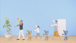- かわいい猫たちが役者といっしょにダンスをする楽しい映像になってます。