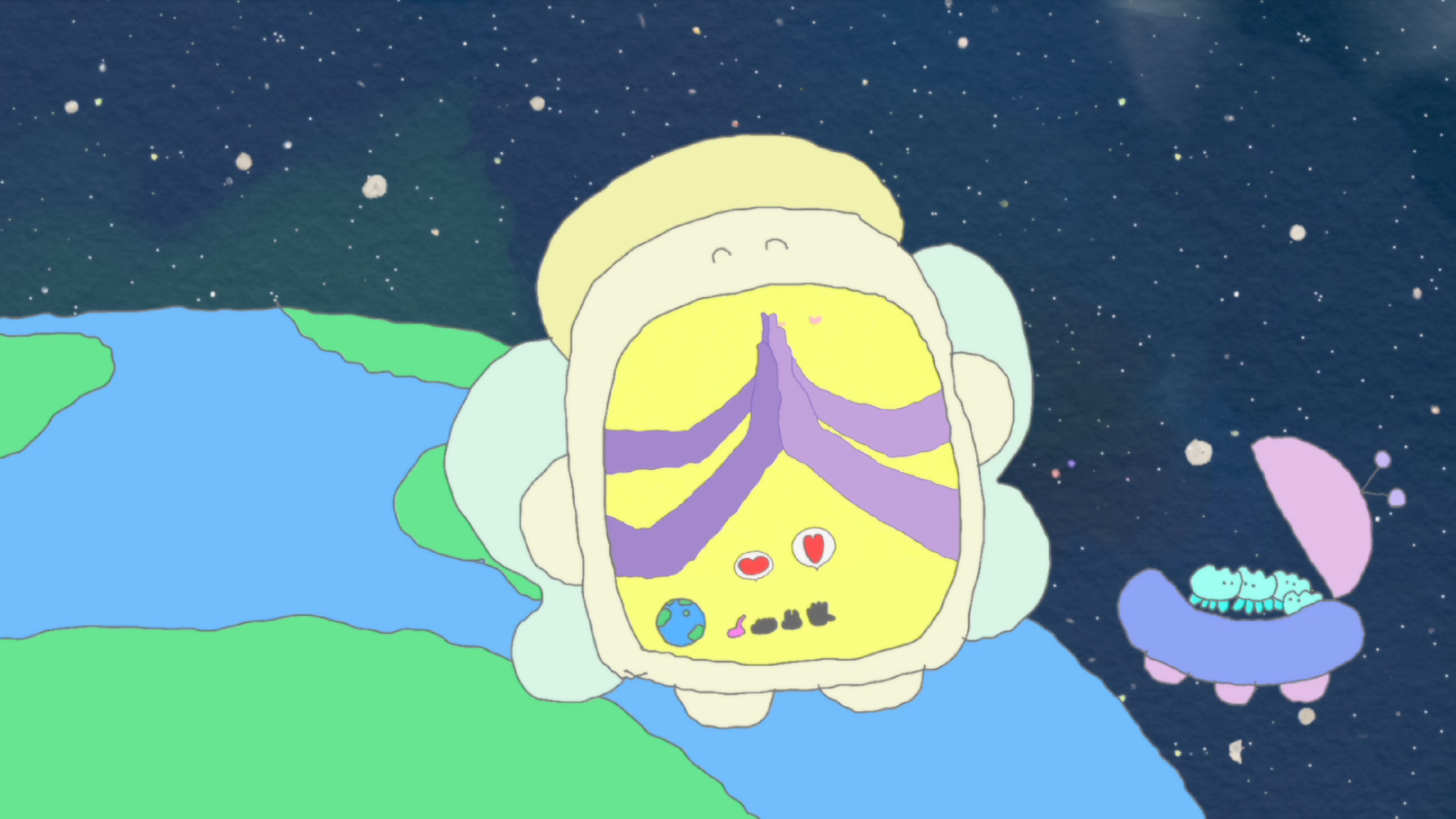 - 美術家の小柳貴衛さんの描く世界感でアニメーションにさせていただきました。