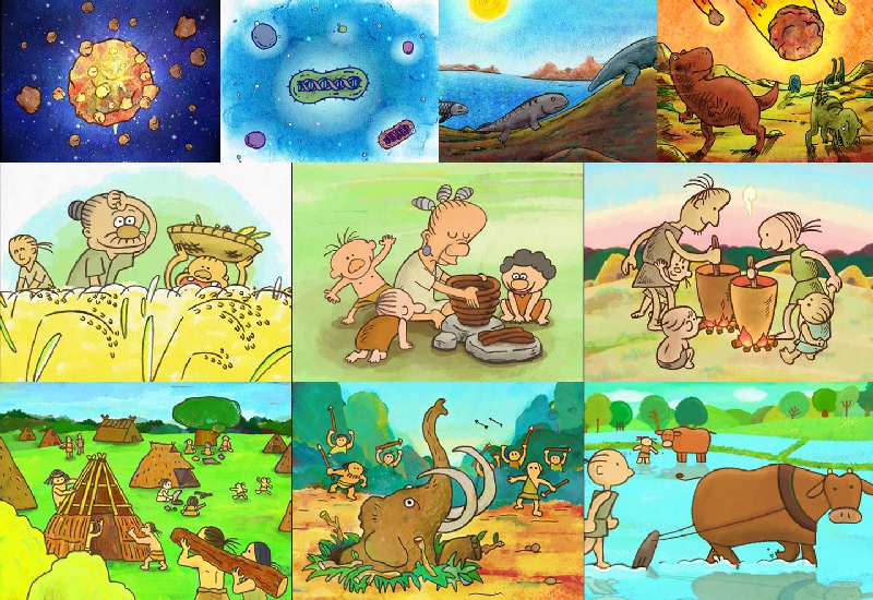 - その中の素材として地球誕生から生物の進化、人類の生活など、