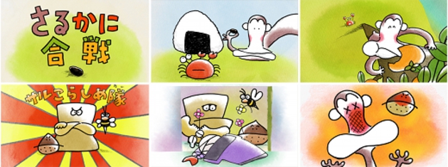 お友達のウスさん、クリさん、ハチさんがカニさんのためにかたきを討つお話です。
