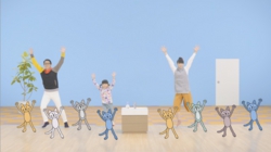 - 楽しい歌に合わせて宇宙人がメタモルフォーゼで変身をして”のしのし”歩いたり