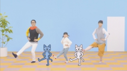 - かわいい猫たちが役者といっしょにダンスをする楽しい映像になってます。