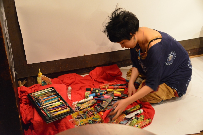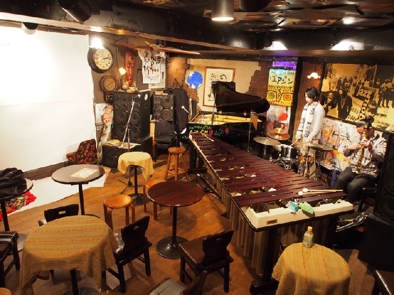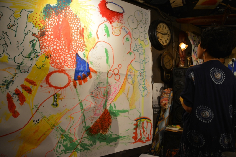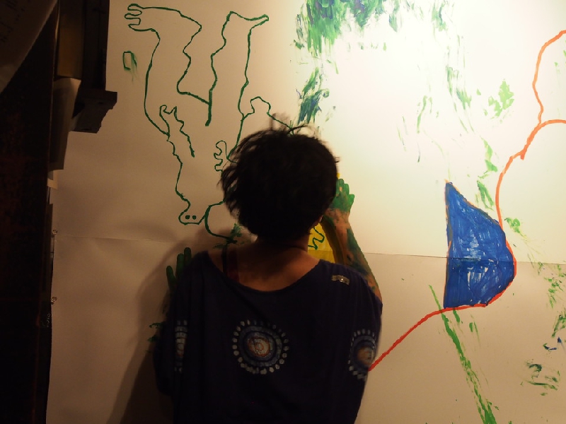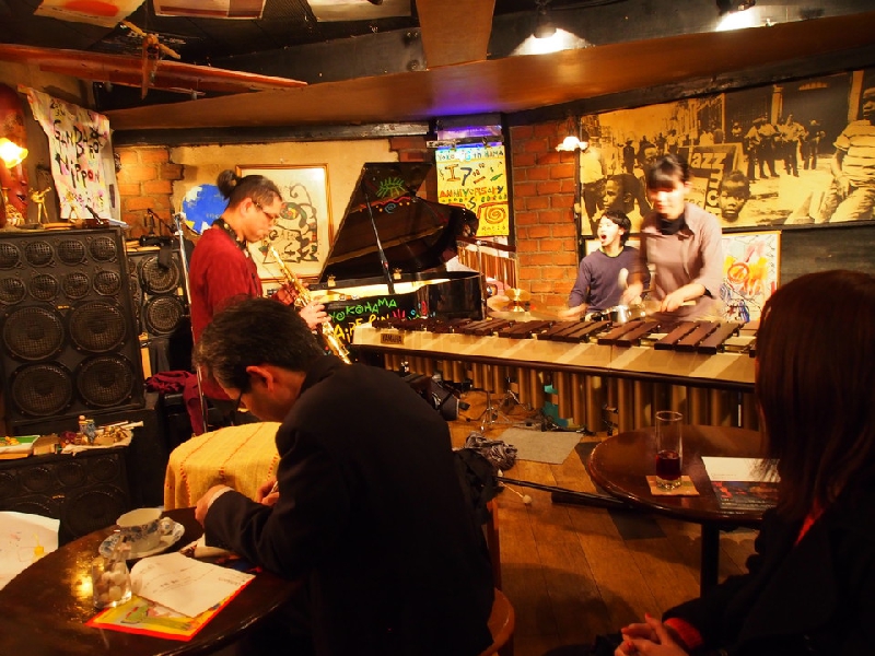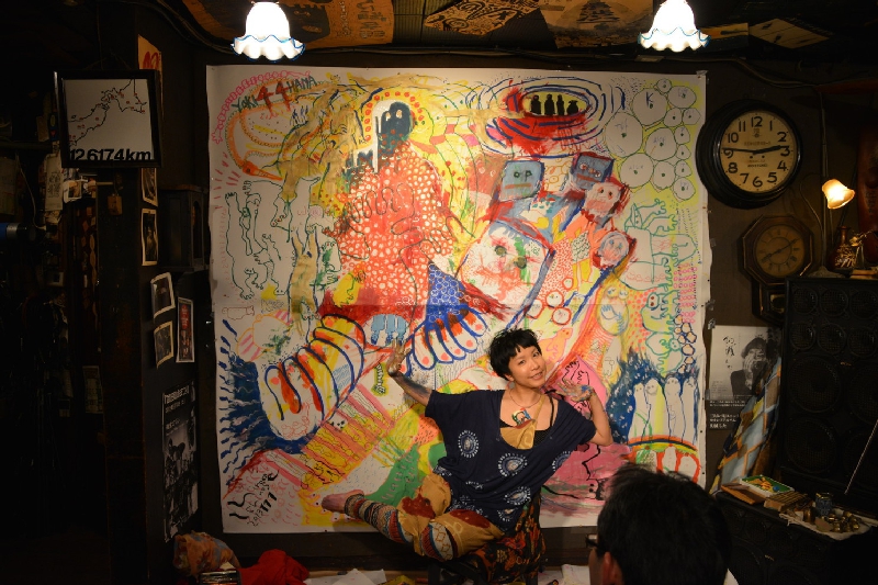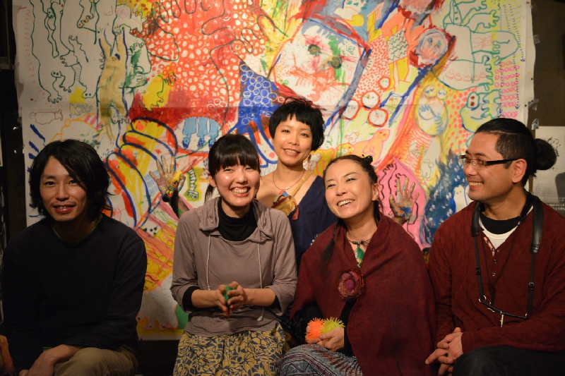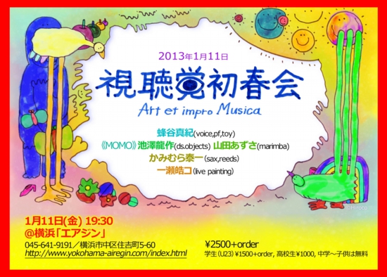 2013.1.11 fri横浜エアジン新春特別企画『視聴覚初春会』~Art et インプロMusica~2013.1/ 11(金) 19時30分~23時00分 (2部構成)蜂谷真紀(歌/pf/他)かみむら泰一(reeds)池澤龍作(ds) 山田あずさ(Bassマリンバ)一瀬皓コ(Live painting)