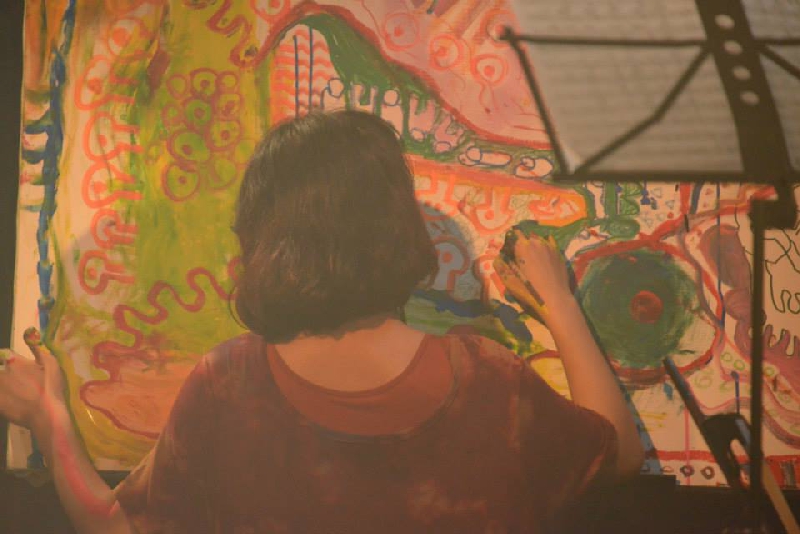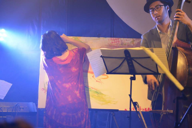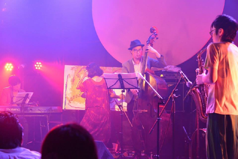 本日は、普段活動しているクインテットに加えて、ライブペインティング一瀬皓コさんをゲストに迎えた特別な夜。