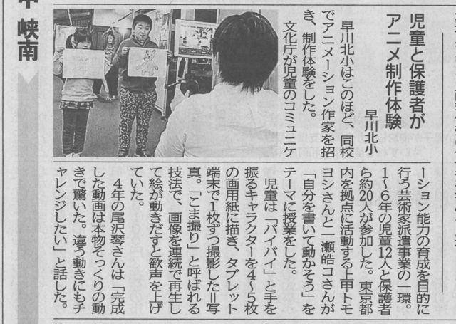 - 山梨日日新聞に早川北小学校で行ったワークショップについて掲載されました。