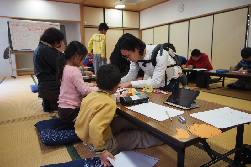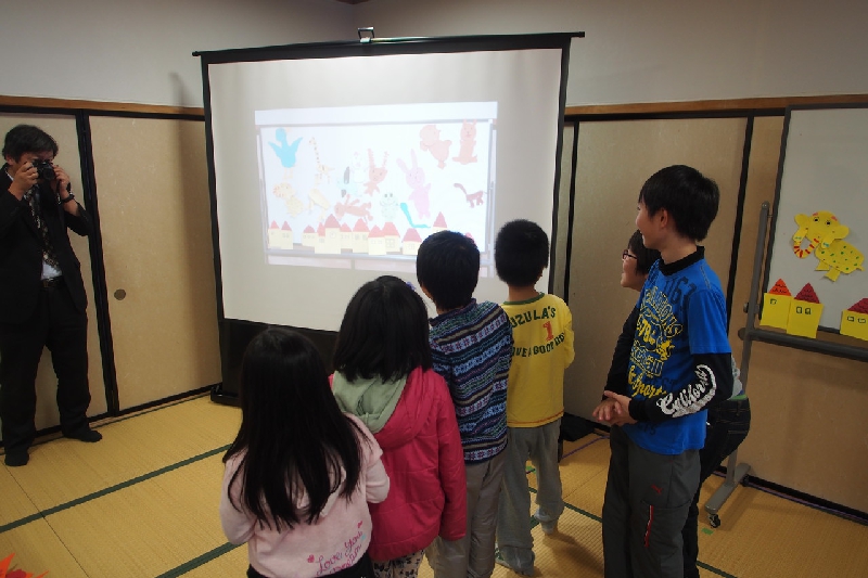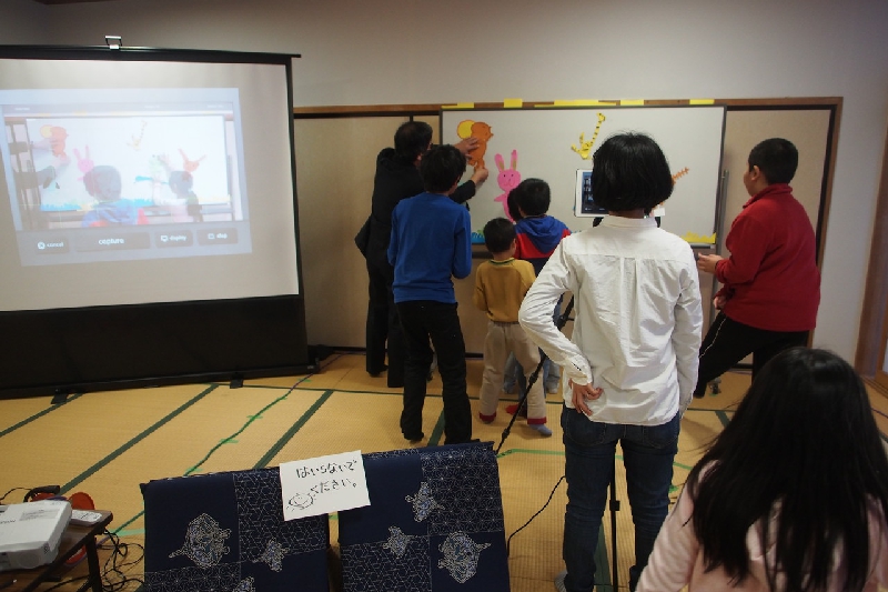 - 完成したアニメーションで大盛り上がり。こどもたちの笑顔にとても元気をいただきました。