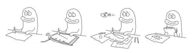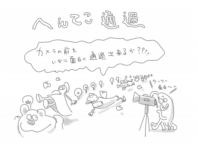 - ワークショップではのびのびと制作をしてもらおうと思い、“ヘンテコな動き”をテーマにフレームイン・アウトをする動画を描いてもらいました。出来上がった作品はどれも元気があって楽しかったです。