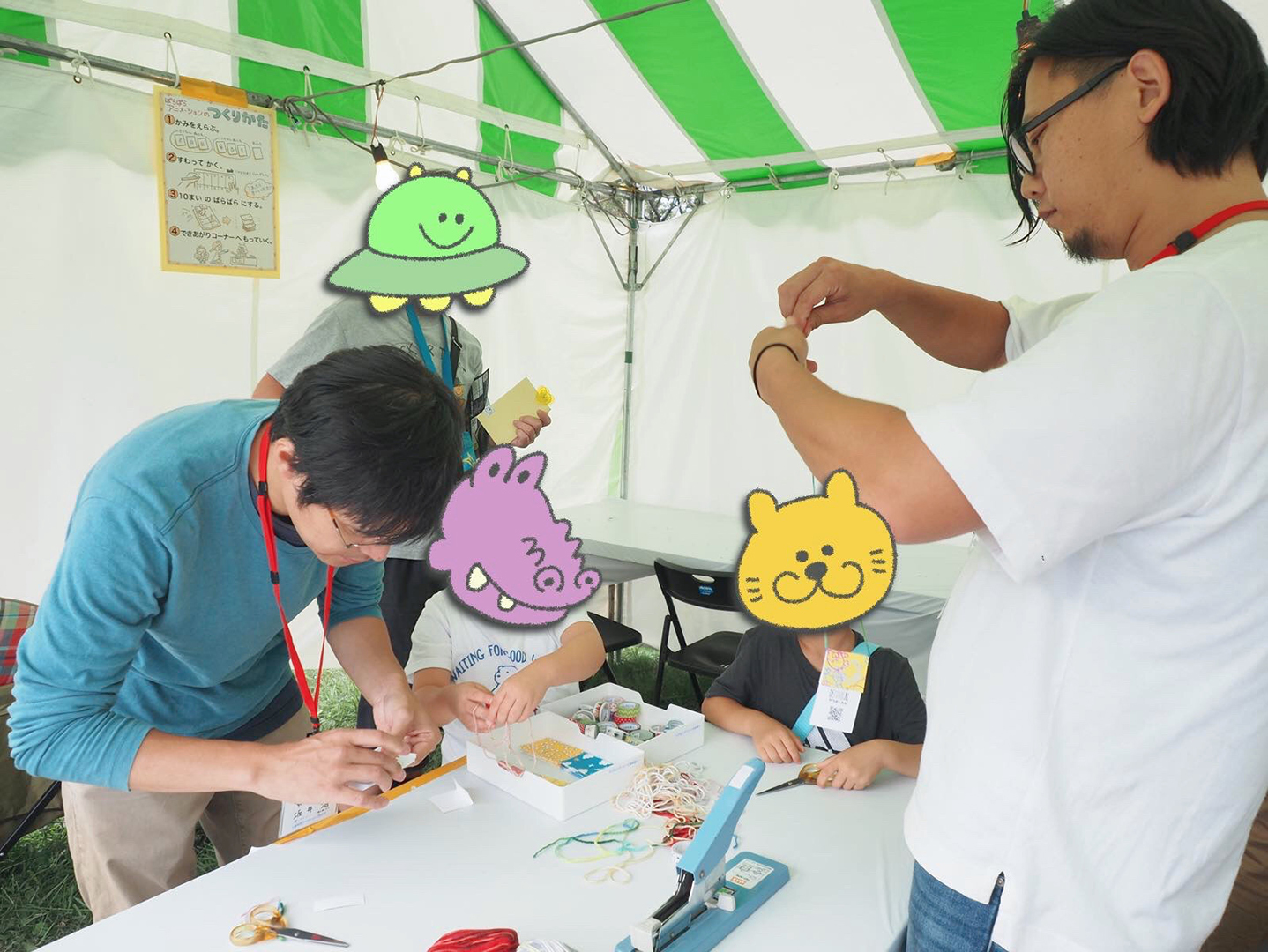 小さな紙にアニメーションを描いてオリジナルのぱらぱらマンガを作成します。 - おしゃれにデコレーションをしたら首飾りにして持ち帰れます。